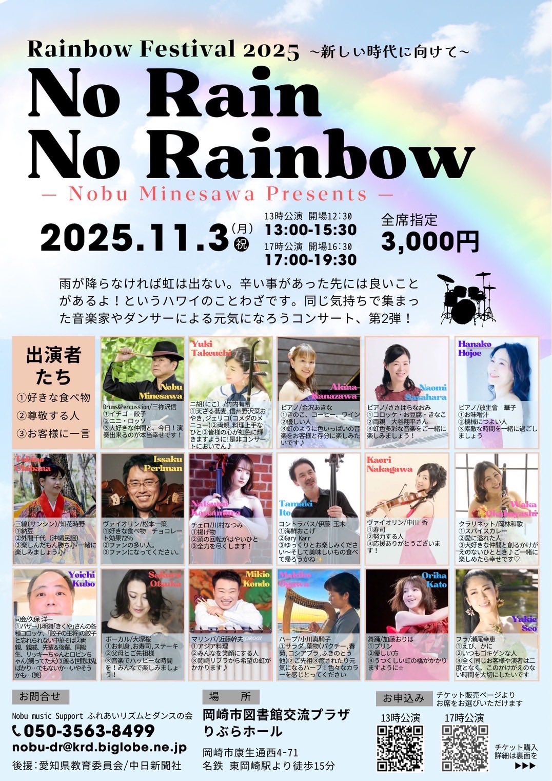 あの困難な時代、コロナ禍で立ち上がった「No Rain No Rainbow」からさらに想いを受け継ぎ、新しい時代へつなぐコンサートを開催します。